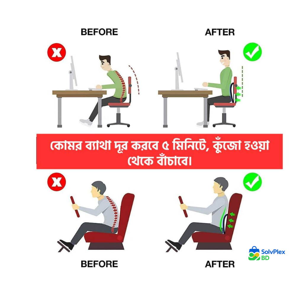 চেয়ার, সোফা, গাড়ির সিট কিঙ্গা শুয়ে-বসে, যেকোনো স্থানে ব্যবহার করা যায়। মাত্র ৫ মিনিটেই ব্যথা থেকে মুক্তি পান তাও আবার স্থায়ী ভাবে!